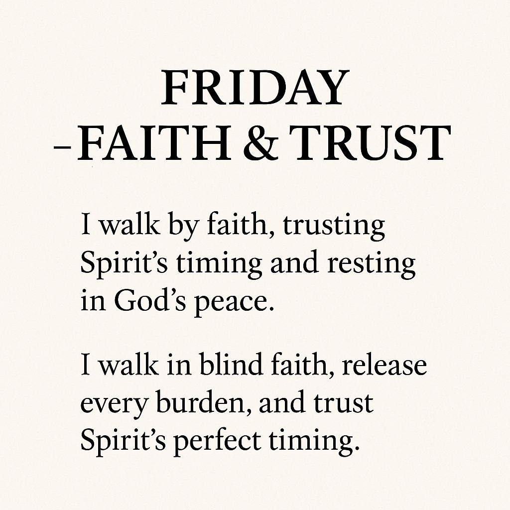 I walk in blind faith, release every burden, and trust Spirit’s perfect timing.