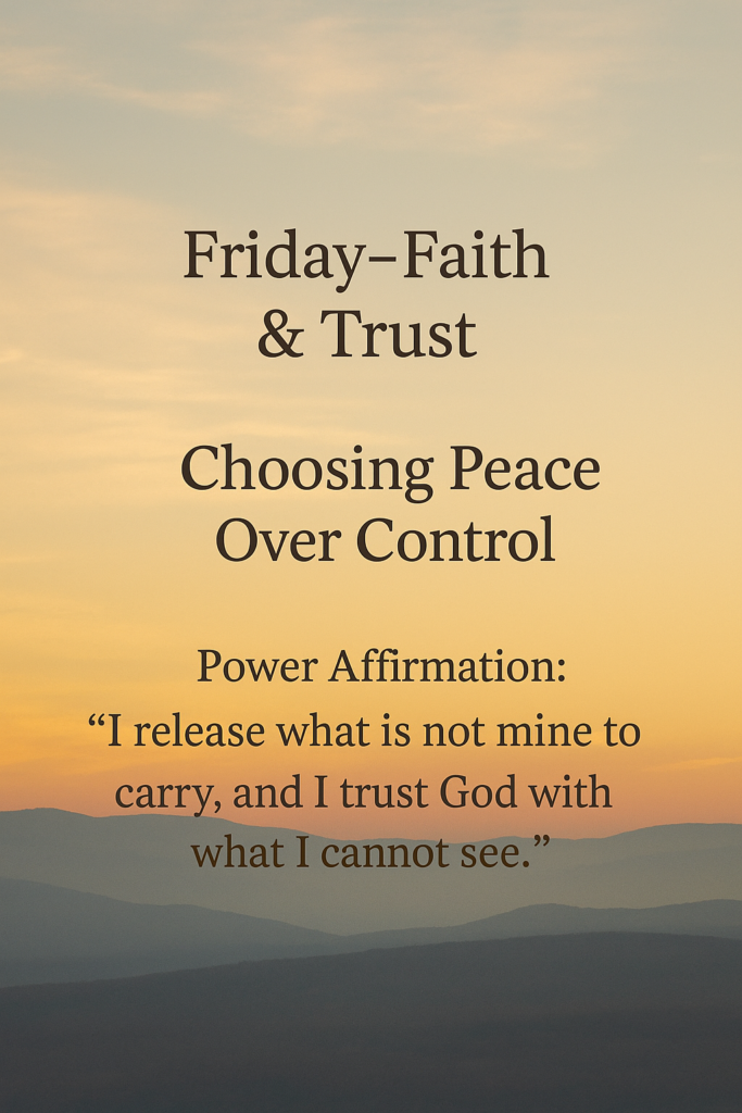 I release what is not mine to carry and I trust God with what I cannot see.