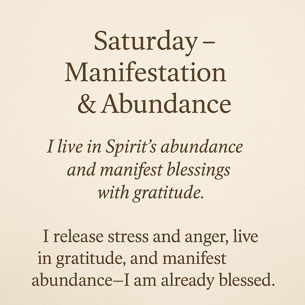 Today I acknowledge that stress and anger have weighed heavy on me, but I release them so they no longer block the flow of Spirit’s blessings. Gratitude is already the rhythm of my life, and even in the small things I pause to give thanks, opening the door to more good.