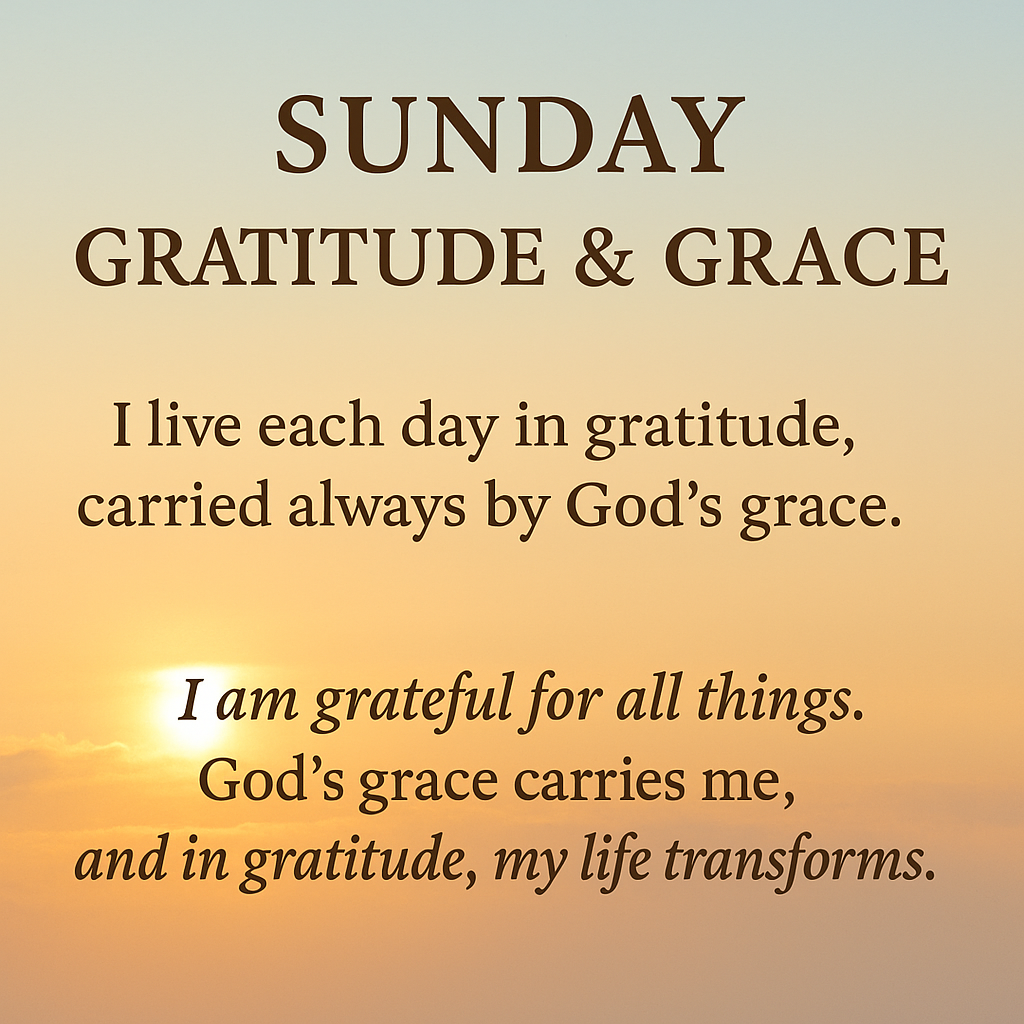 I am grateful for all things. God’s grace carries me, and in gratitude, my life transforms.