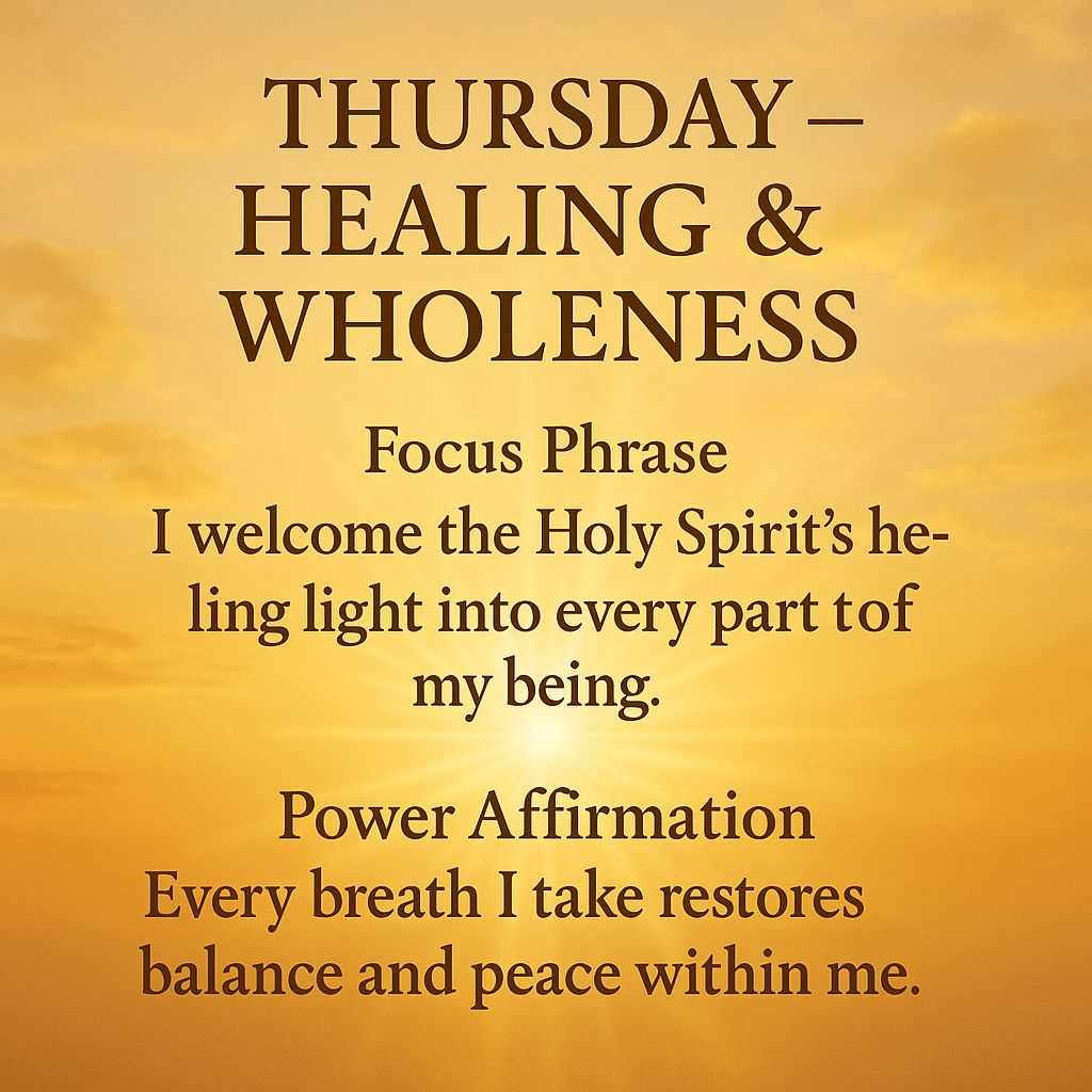 As I meditate today, I welcome renewal. The Holy Spirit flows through my mind, heart, and body—restoring harmony and wholeness. I am healing, and I am whole.