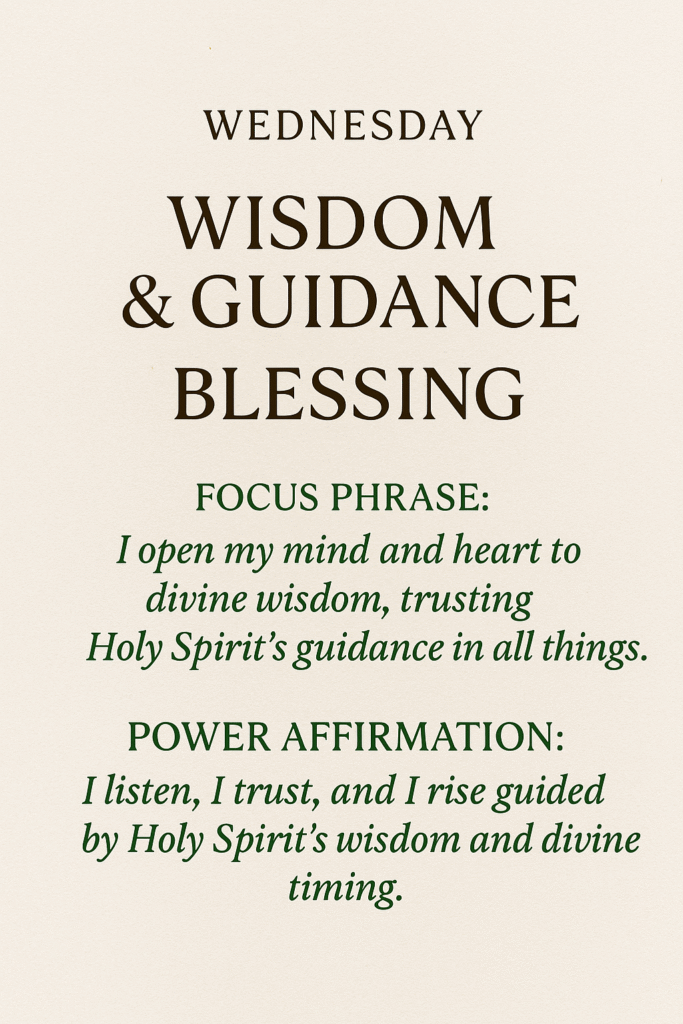 Today I remember that wisdom is not found in my own understanding but in the stillness of Spirit’s voice. I lean on Holy Spirit always, inviting insight into every choice and every relationship. Even when I don’t yet understand, I trust that clarity will come in divine timing.